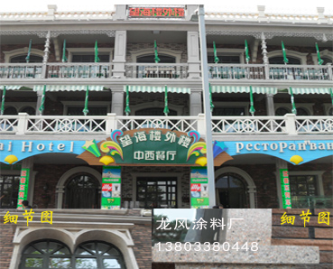 下面是秦皇島北戴河望海樓外樓真石漆涂料及水性多彩漆外墻涂料翻新施工案例圖片:
